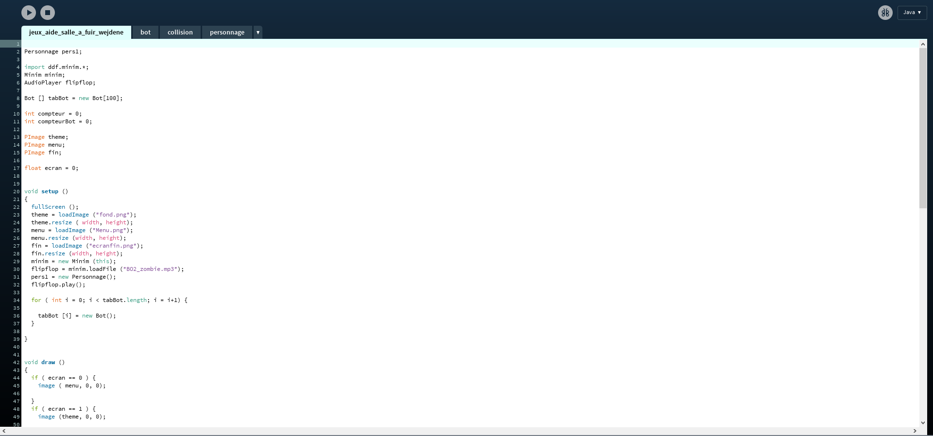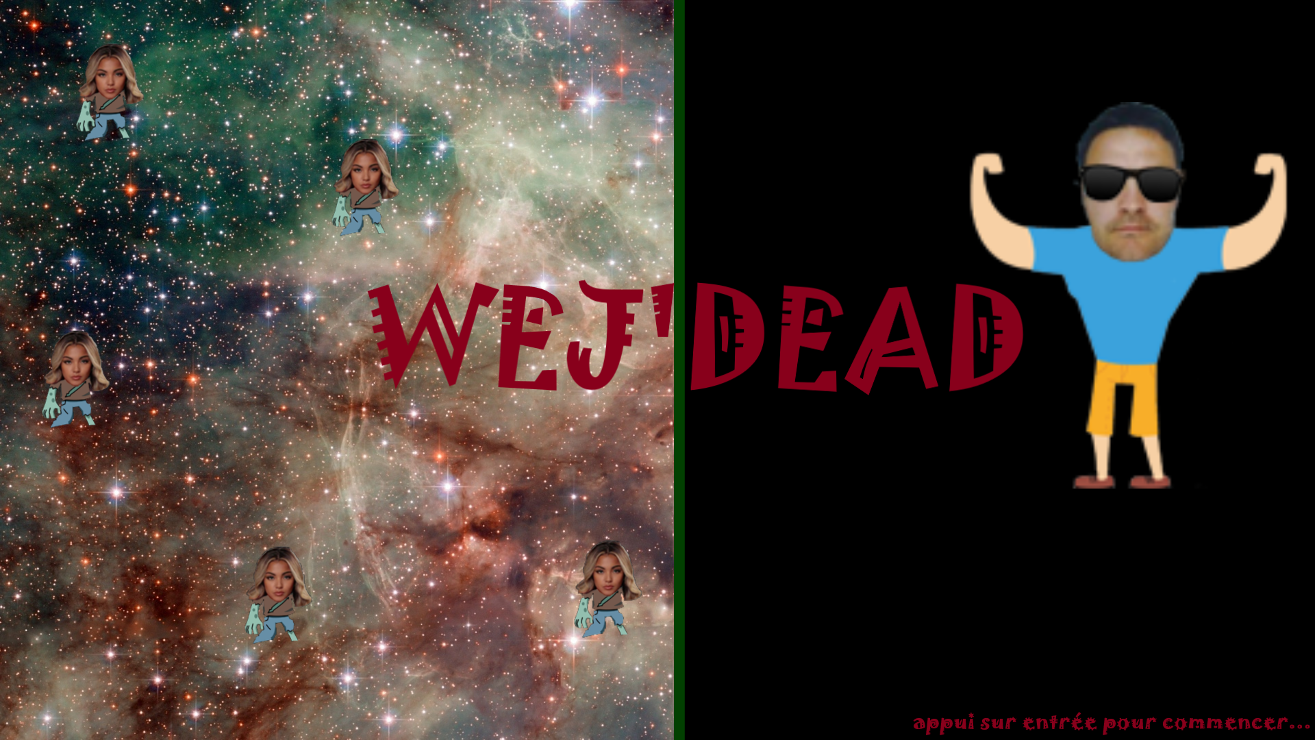 Ce jeu s'intitule WEJ'DEAD, le but de ce jeu est d'éviter bien evidement les wejdedenes qui poursuivent notre agreable professeur M.Salle. Aide le à les fuir. Tu peux controler M.Salle en appuyant sur les touches ZQSD ou tous simplement en appuyant sur les fleches directionnelle. Combien de temps vas-tu tenir ???